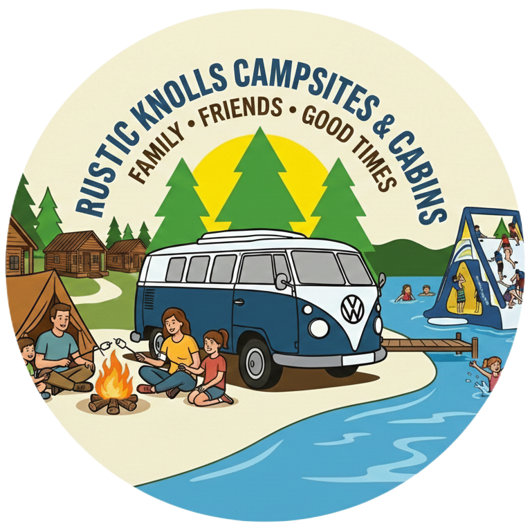 Rustic Knolls Campsites & Cabins is situated in a stunning green valley, only 10 minutes from Mount Vernon, Ohio. For 58 years, this family-owned and operated campground has offered a welcoming escape. At Rustic Knolls, you can enjoy fishing, swimming, playing horseshoes and corn hole, or simply relax in your favorite lawn chair while the kids have fun exploring and playing. We offer multiple cabins (small & large), campsites, & RV sites, perfect for any camper and their group!