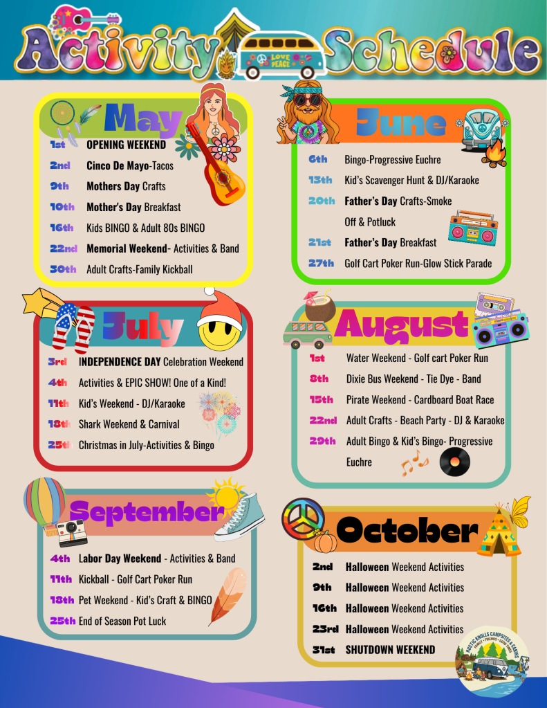 From traditional campsites to cute glamping cabins, we’ve got you covered with top-notch amenities and activities for small & large groups.